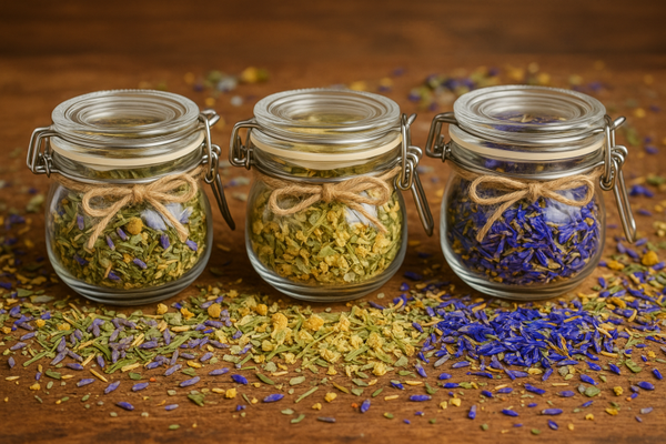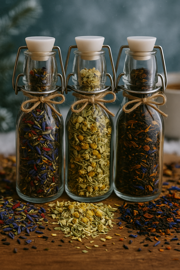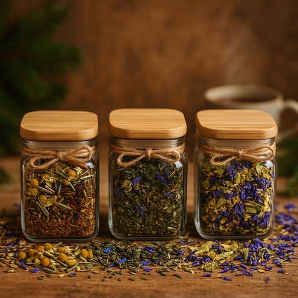 Ontdek onze sfeervolle collectie glazen potjes gevuld met heerlijke, cafeïne- en citrusvrije theekruiden. Elk potje is met zorg samengesteld en ideaal als cadeautje voor jezelf of iemand anders.